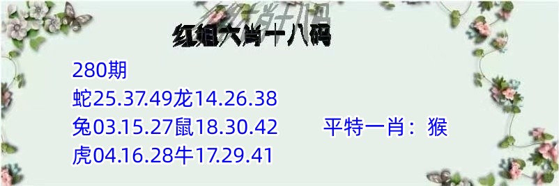 280期:〖十码〗20.32.07.19.04.16.12.24.09.06